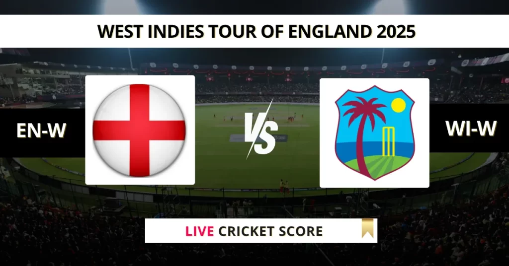 ENG vs WI Live Cricket Score — The England (ENG) vs West Indies (WI) 1st T20I in the West Indies tour of England 2025 is set for June 6, 2025, 11:00 PM IST, at Riverside Ground, Chester-le-Street.