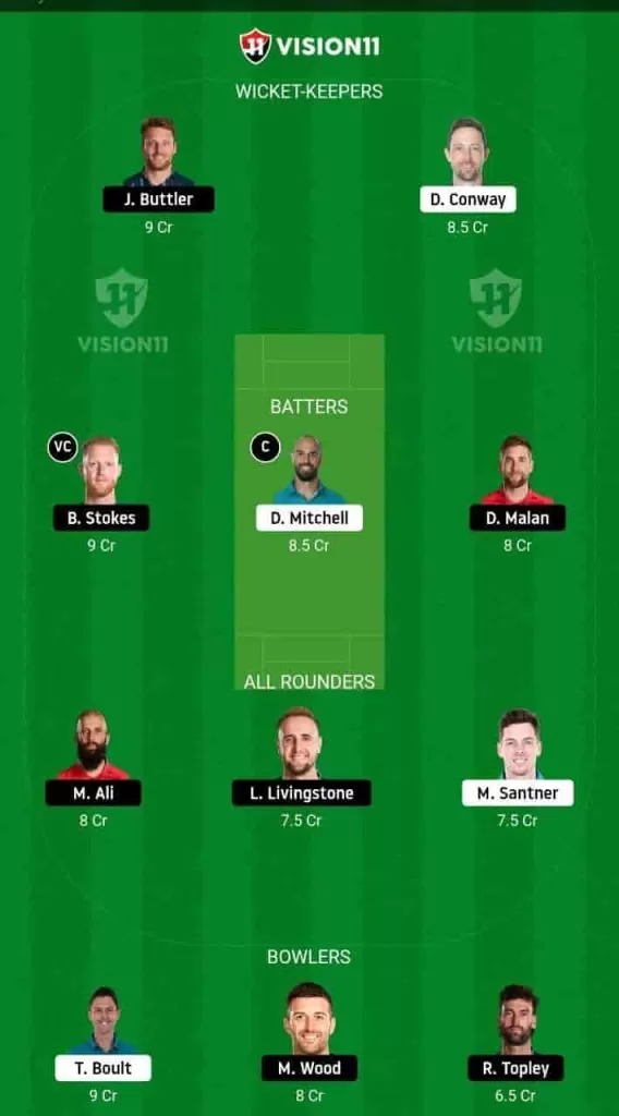 - बैट – बी स्टोक्स (वीसी) , डी मिथसेल (सी) , डी मालन
