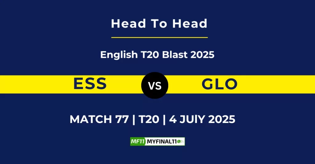 ESS vs GLO Player Battle, Head-to-Head Team Stats & Records and more: Today in English T20 Blast 2025, Essex (ESS) will take on Gloucestershire (GLO) at County Ground, Chelmsford, on 4th July 2025 at 11:30 PM.