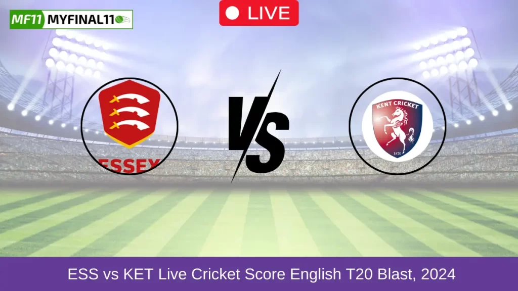 ESS vs KET Live Score — The Essex vs Kent match in the English T20 Blast 2024 is set for July 11, 2024, at 11:30 PM IST at County Ground, New Road, Leicester. Cricket fans can follow the ESS vs KET live cricket score, scorecard, and ball-by-ball match commentary on myfinal11. Live streaming for this match is available on the Fancode app/website.