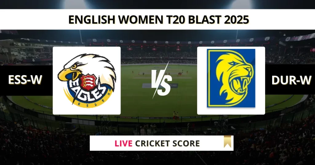 ESS-W vs DUR-W Live Score: Follow the real-time updates and ball-by-ball coverage of The Match 54 in the English Womens T20 Blast 2025. The match is being played at County Ground, Chelmsford on July 18, 2025 10:30 PM IST.