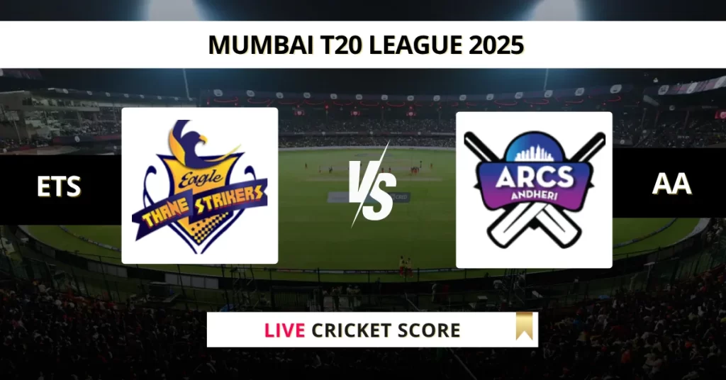 ETS vs AA Live Cricket Score — The Eagle Thane Strikers (ETS) vs Arcs Andheri (AA) Match 18 in the T20 Mumbai 2025 is set for June 8, 2025, 2:30 PM IST, at Wankhede Stadium, Mumbai.