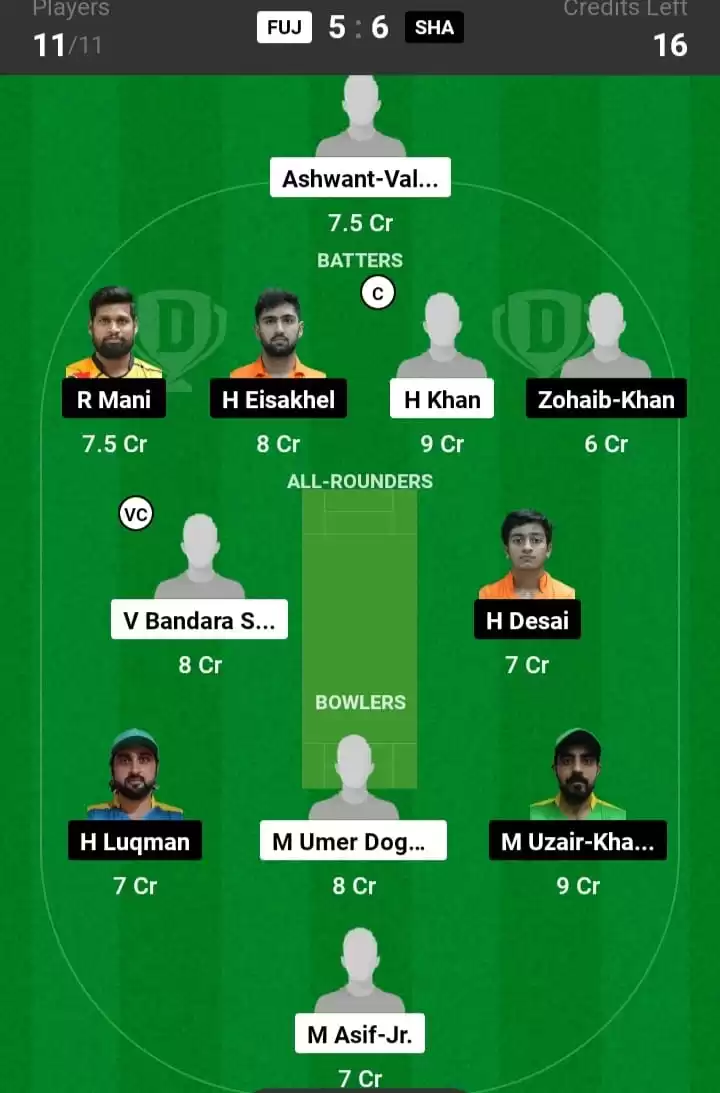 FUJ vs SHA Dream11 Fantasy Cricket Today Match Prediction Team