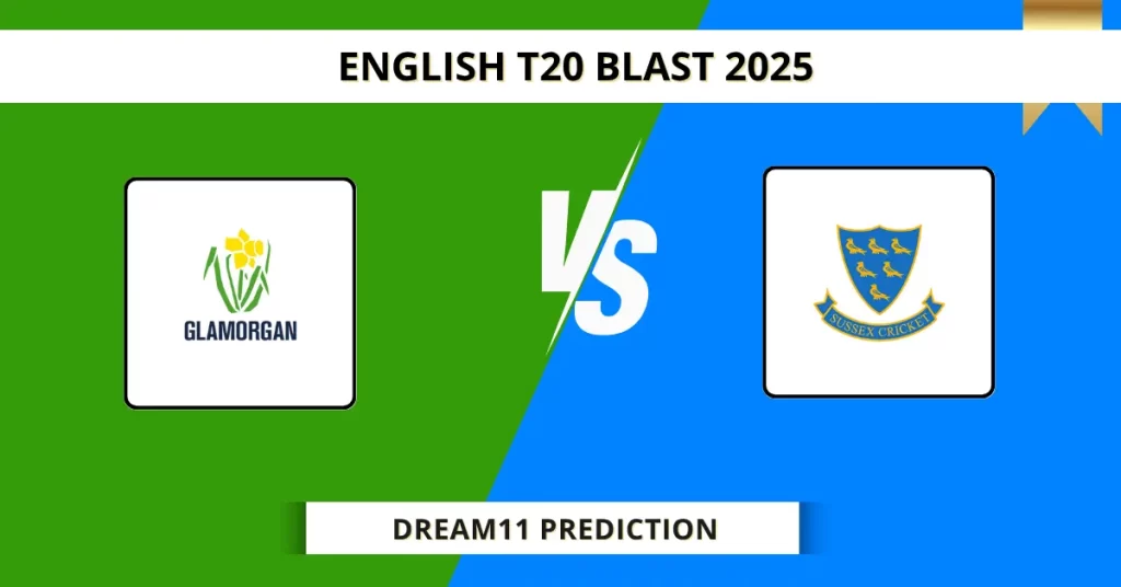 GLA vs SUS Dream11 Prediction – Glamorgan and Sussex will clash in Match 50 of English T20 Blast 2025. The exciting fixture takes place at Sophia Gardens on June 14, 2025, 11:00 PM IST. Looking for the best GLA vs SUS Dream11 prediction? Explore fantasy cricket tips, match preview, expert analysis, and probable playing XI.