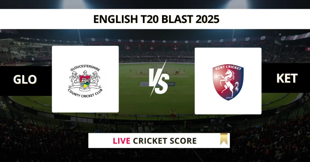 GLO vs KET Live Cricket Score — The Gloucestershire (GLO) vs Kent (KET) Match 3 in the Vitality Blast 2025 is set for May 30, 2025, 11:30 PM IST, at County Ground, Bristol.