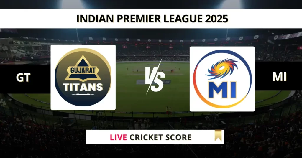 GT vs MI Live Cricket Score — The Gujarat Titans (GT) vs Mumbai Indians (MI) Eliminator in the Indian Premier League 2025 is set for May 30, 2025, 7:30 PM IST, at Maharaja Yadavindra Singh International Cricket Stadium.