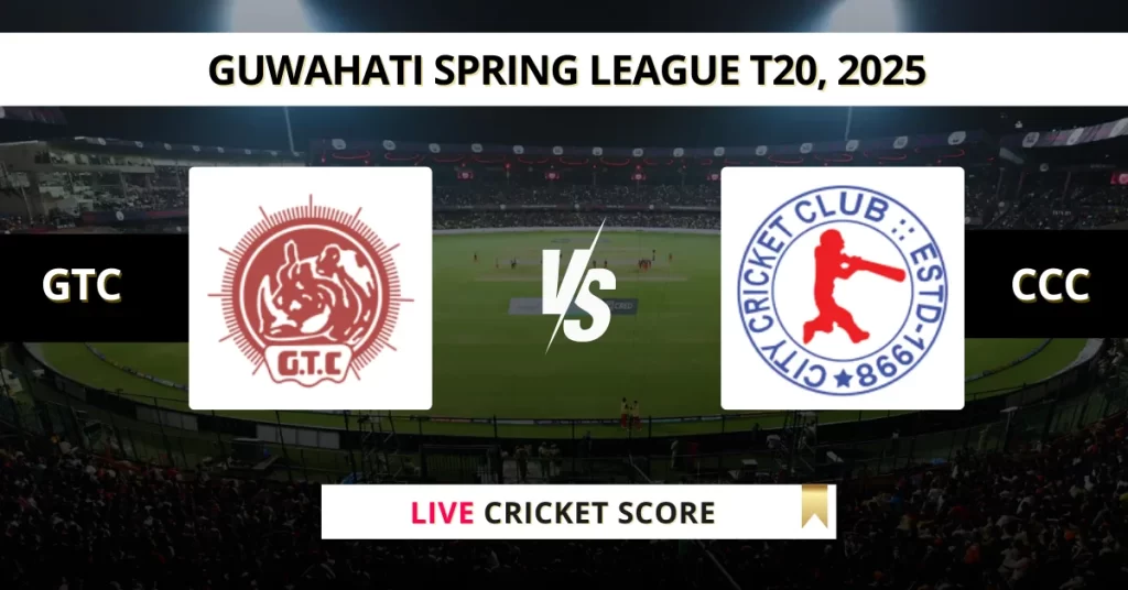 GTC vs CCC Live Cricket Score — The Gauhati Town Club (GTC) vs City Cricket Club (CCC) Match 5 in the Guwahati T20 Spring League 2025 is set for April 19, 2025 9:00 AM IST, at Judges Field, Guwahati.