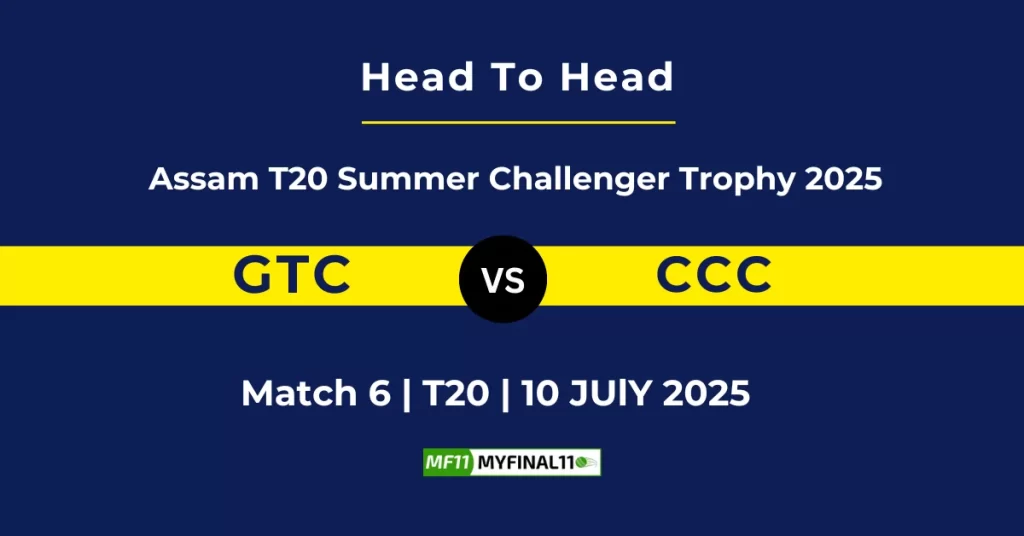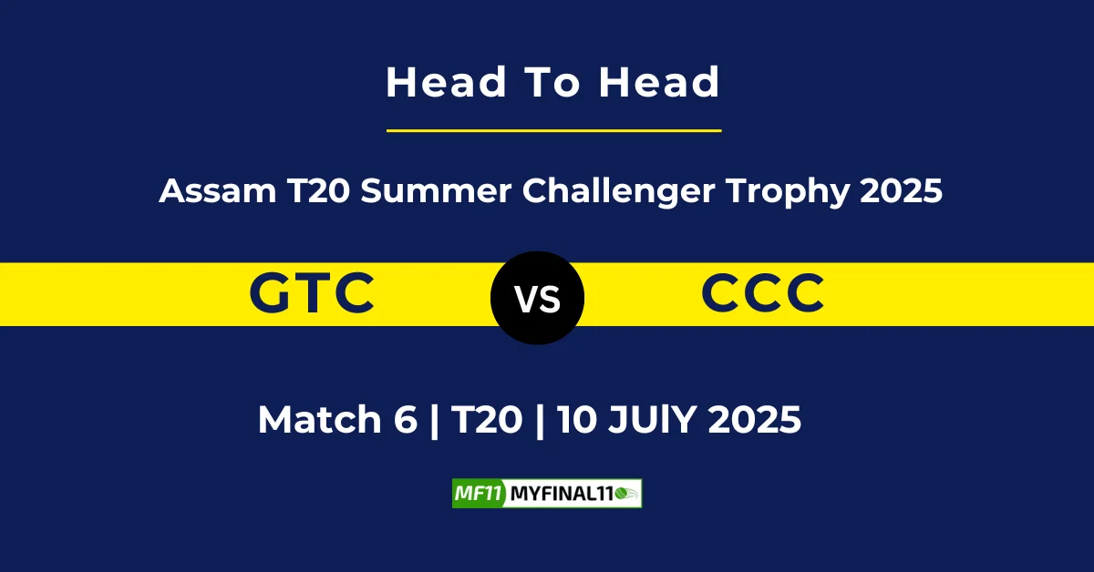 GTC vs CCC Player Battle, Head-to-Head Team Stats & Records and more: Today in Assam T20 Summer Challenger Trophy (2025), Gauhati Town Club (GTC) will take on City Cricket Club (CCC) at Judges Field, Guwahati, on 10th July 2025 at 1:30 PM.