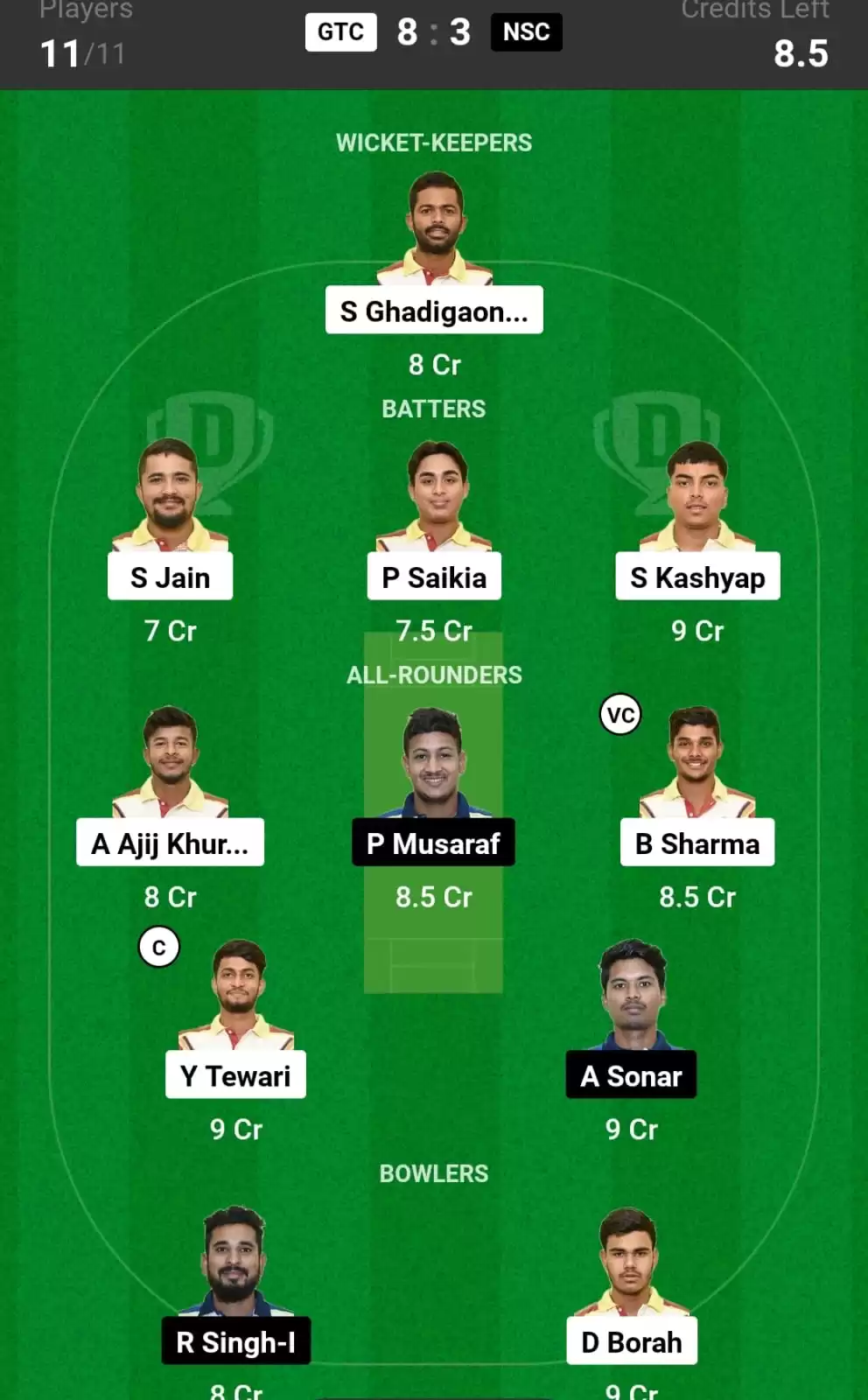 It is good to have a maximum no. of Gauhati Town Club Batters and bowlers in your fantasy team that will help you score more fantasy points