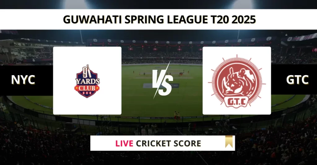 GTC vs NYC Live Cricket Score — The Gauhati Town Club (GTC) vs 91 Yard Club (NYC) Semi Final 2 in the Guwahati T20 Spring League 2025 is set for May 2, 2025, 1:00 PM IST, at Judges Field.