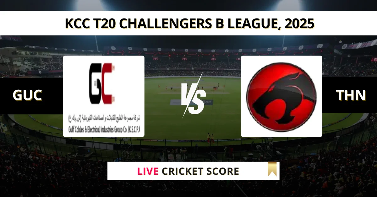 GUC vs THN Live Cricket Score — The Gulf Cable (GUC) vs Thunder Cats (THN) Match 19 in the Kuwait T20 Challengers League B 2025 is set for April 18, 2025 10:30 AM IST, at Sulaibiya Cricket Ground, Kuwait City.