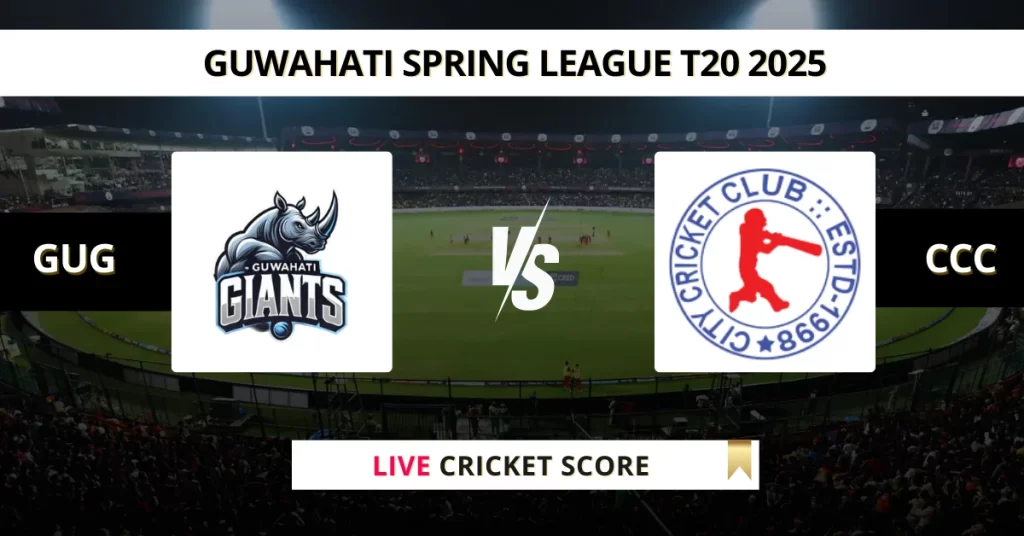 GUG vs CCC Live Cricket Score — The Guwahati Giants (GUG) vs City Cricket Club (CCC) Semi Final 1 in the Guwahati T20 Spring League 2025 is set for May 2, 2025 9:00 AM IST, at Judges Field.