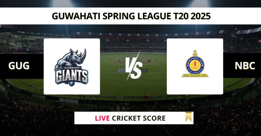 GUG vs NBC Live Cricket Score — The Guwahati Giants (GUG) vs Nabajyoti Club (NBC) Match 22 in the Guwahati T20 Spring League 2025 is set for April 27, 2025, 1:00 PM IST, at Judges Field, Guwahati.