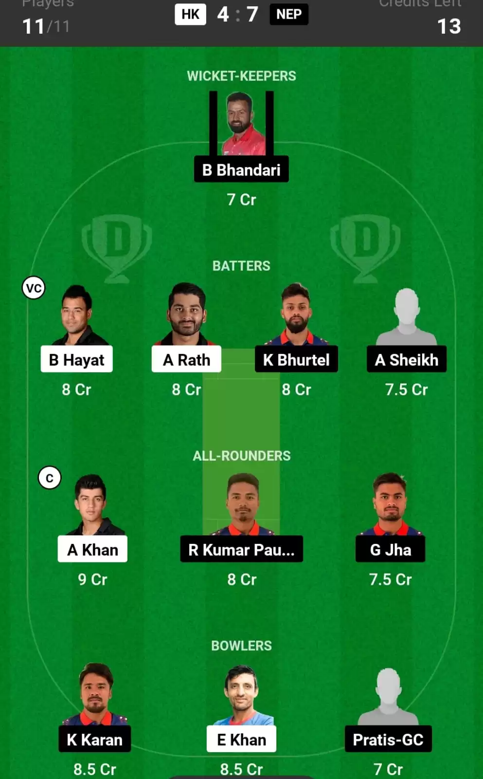 HK vs NEP Dream11 Prediction Today Match Expert Advice: