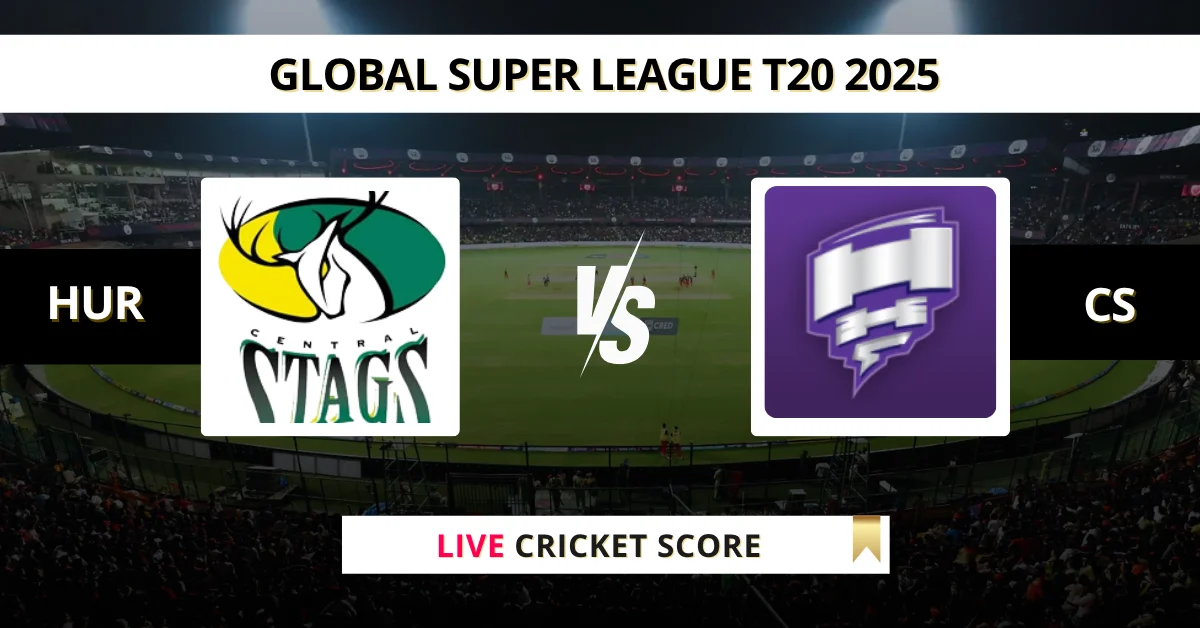 HUR vs CS Live Score: Follow the real-time updates and ball-by-ball coverage of The Match 7 in the Global Super League T20 2025. The match is being played at Providence Stadium, Guyana, on July 16, 2025, 4:30 AM IST.
