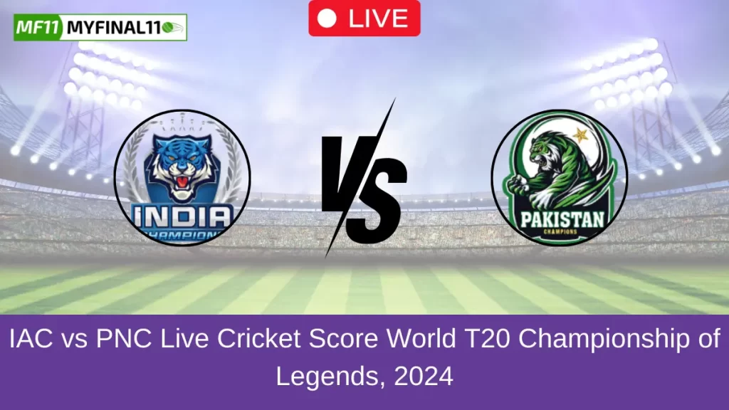 IAC vs PNC Live Score — The India Champions vs Pakistan Champions match in the World T20 Championship of Legends 2024 is set for July 13, 2024, at 9:00 PM IST at Edgbaston, Birmingham. Cricket fans can follow the IAC vs PNC live cricket score, scorecard, and ball-by-ball match commentary on myfinal11. Live streaming for this match is available on the Fancode app/website.