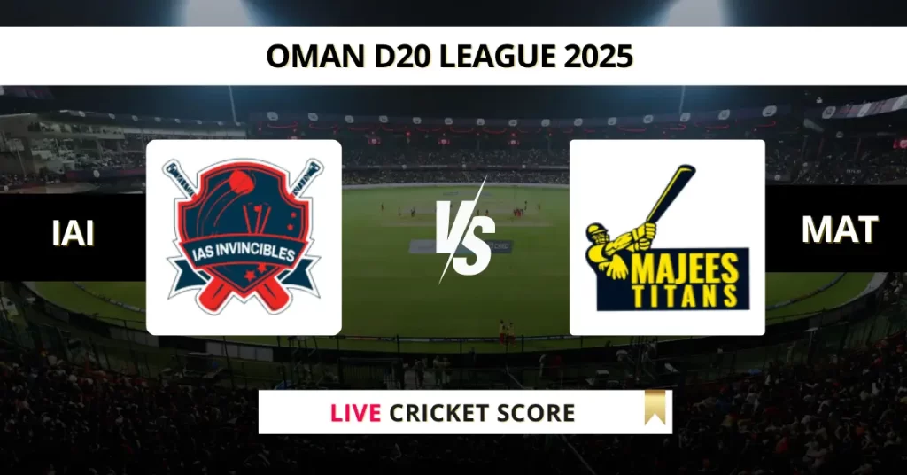 IAI vs MAT Live Score: Follow the real-time updates and ball-by-ball coverage of The Match 7 in the Oman D20 League 2025. The match is being played at Al Amerat Cricket Ground Oman Cricket (Ministry Turf 1) on August 17, 2025 5:00 PM IST.
