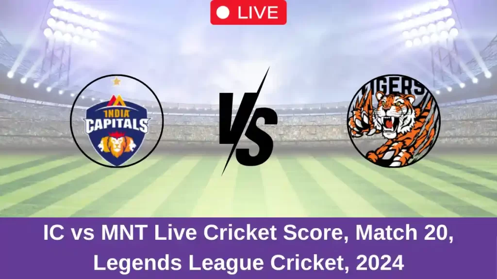 IC vs MNT Live Cricket Score — India Capitals (IC) vs Manipal Tigers (MNT) Match 20 in the Legends League Cricket is set for October 10, 2024, at 7:00 PM IST, at Bakshi Stadium.