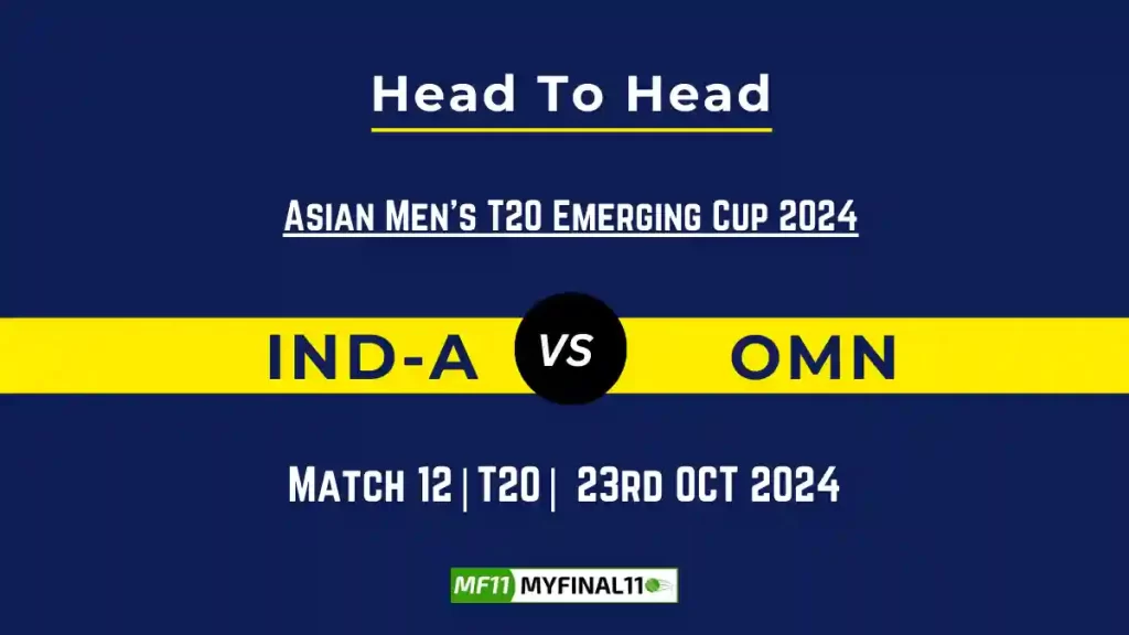 Get all the IND-A vs OMN player stats, records, and head-to-head between India A (IND-A) and Oman. This is the 12th Match of the Asian Men’s T20 Emerging Cup 2024 tournament. We held at the Al Amerat Cricket Ground Oman Cricket (Ministry Turf 1), Al Amarat, on October 23rd, 2024, at 07:00 PM IST. In this article, we will provide details about IND-A vs OMN player stats, and player records. And the IND-A vs OMN player battles are for both teams.