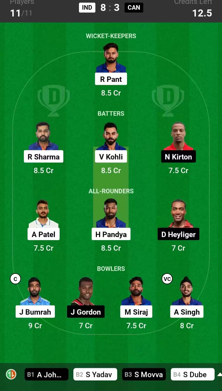 IND vs CAN Dream11 Team Prediction & Match Preview