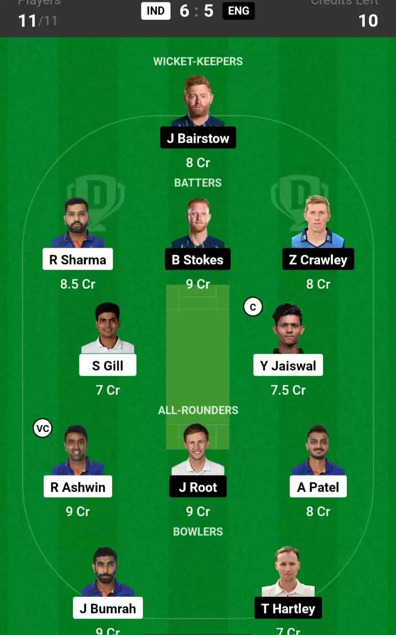 IND vs ENG Dream11 Prediction Fantasy Expert Cricket Team: England tour of India, 2024