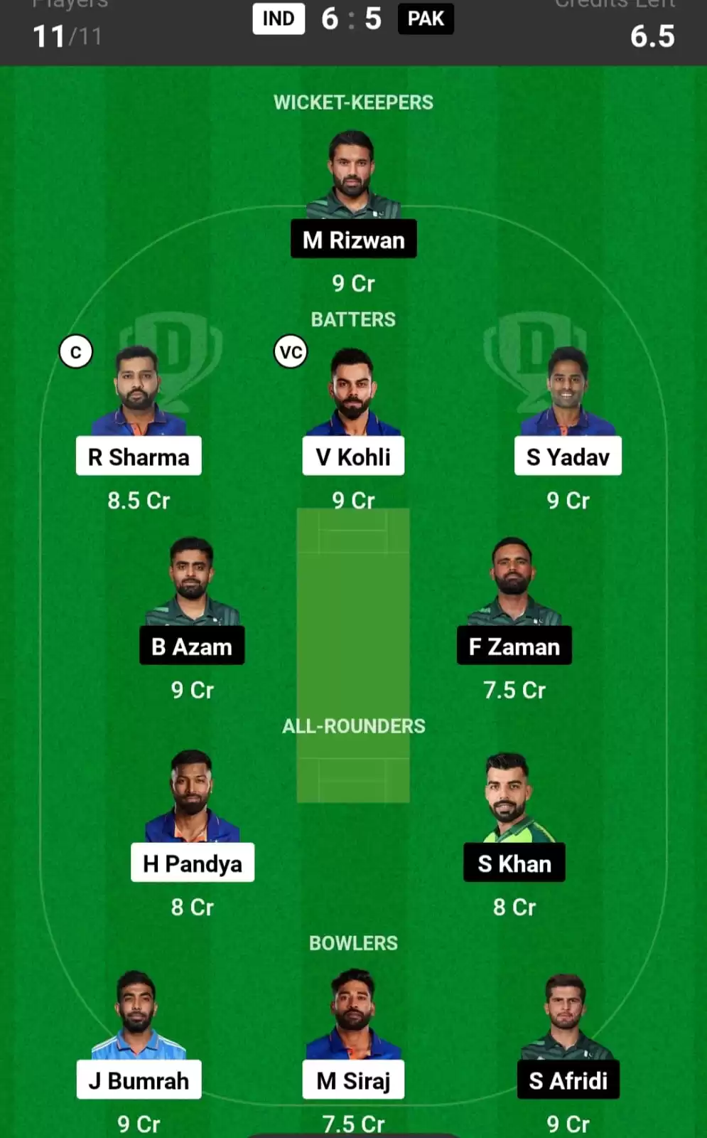 IND vs PAK Dream11 Team Prediction & Match Preview