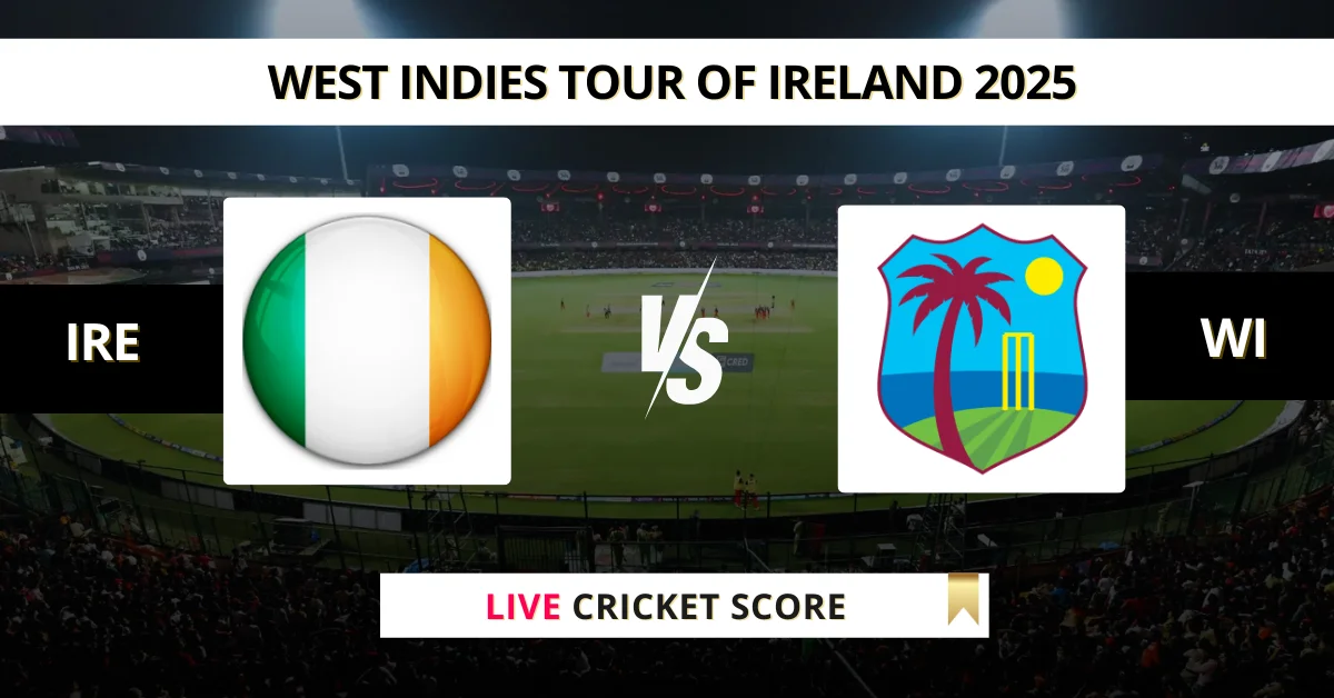 Stay updated with IRE vs WI live score and ball-by-ball updates on MyFinal11. Don’t miss any moment as the action unfolds. Watch live on the Fancode platform.