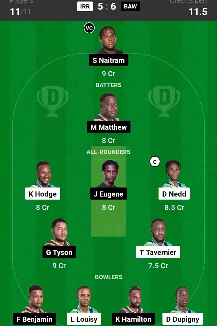 IRR vs BAW Live Fantasy Cricket Prediction Team