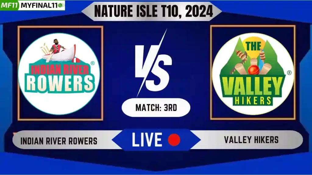 Get live score updates for the IRR vs TVH match as Indian River Rowers (IRR ) take on Valley Hikers (TVH ) in the 3rd Nature Isle T10, 2024 match. Follow the live score and ball-by-ball commentary here. The match will begin on June 24th, 2024, at 09:30 PM IRR and will be hosted at Windsor Park, Roseau. Live Streaming of this match is available on the Fancode, and for IRR vs TVH Live Cricket scorecard ball-by-ball commentary, Visit Here.