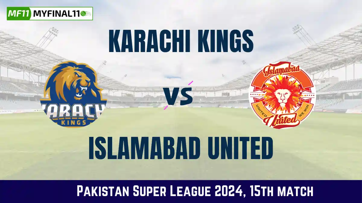 KAR vs ISL Dream11 Prediction Today Match: Karachi Kings (KAR) vs Islamabad United (ISL) are scheduled to compete in the 15th match of the Pakistan Super League 2024 on Wednesday, 28th February 2024. The match will be hosted at National Stadium, Karachi at 7:30 PM IST. Karachi Kings is in the 4th place with two wins from three matches whereas Islamabad United is in the 5th place with one win from four matches.