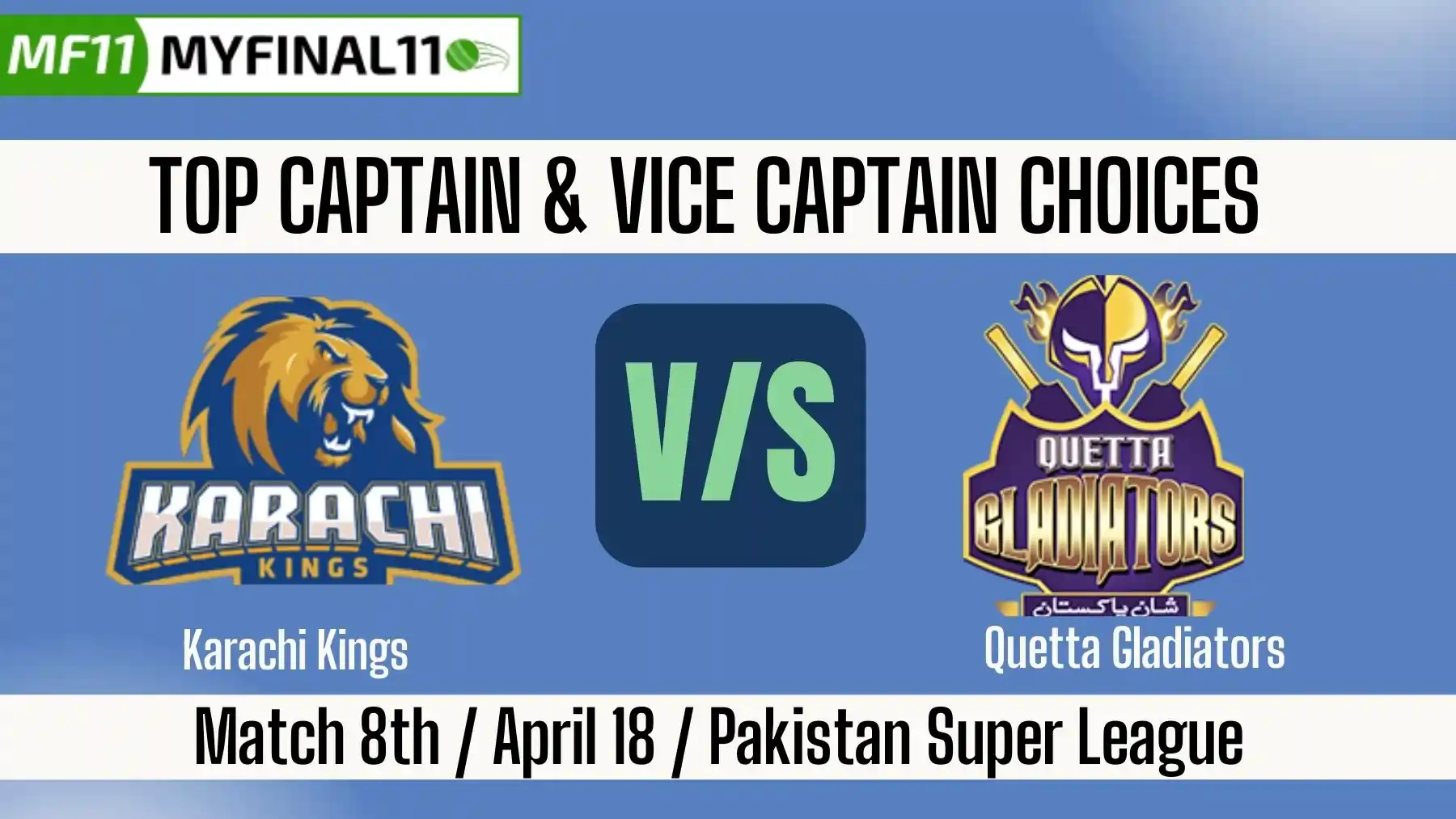 KAR vs QUE Top 3 Captain and Vice-Captain picks for 8th Match – PSL 2025 – Karachi Kings (KAR) will face Quetta Gladiators (QUE) in the 8th match of Pakistan Super League. In this article, we will suggest the top three contenders for captain and vice-captain positions on your PSL Dream11 Team.