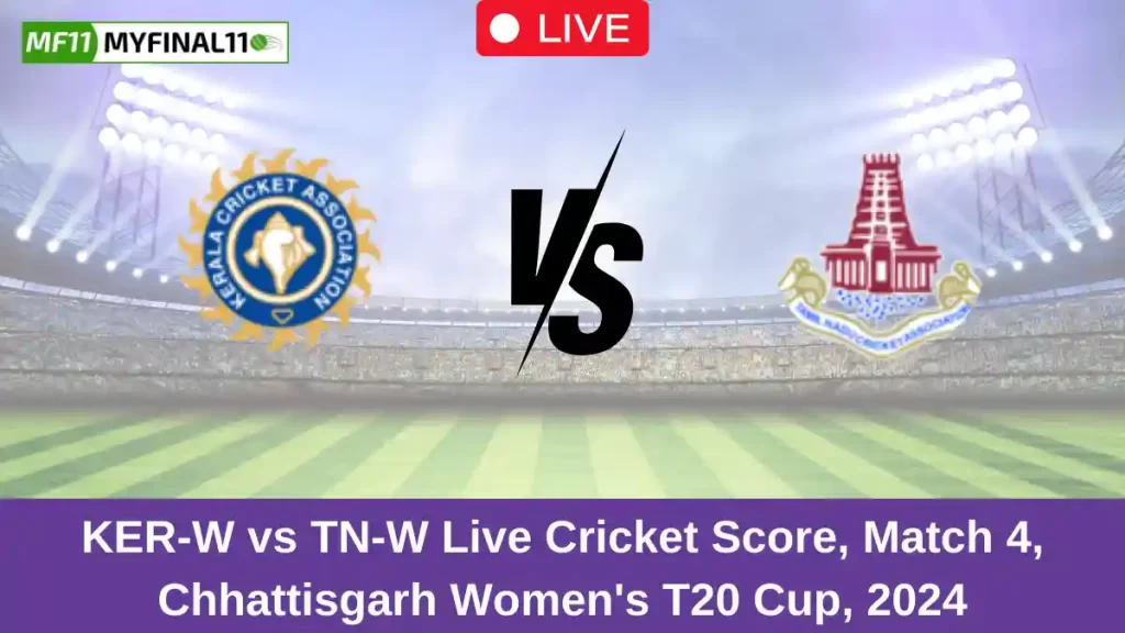 Cricket fans can follow the live cricket score, scorecard, and ball-by-ball match commentary on MyFinal11. Live streaming for the KER-W vs TN-W match is available on the Fancode app/website.