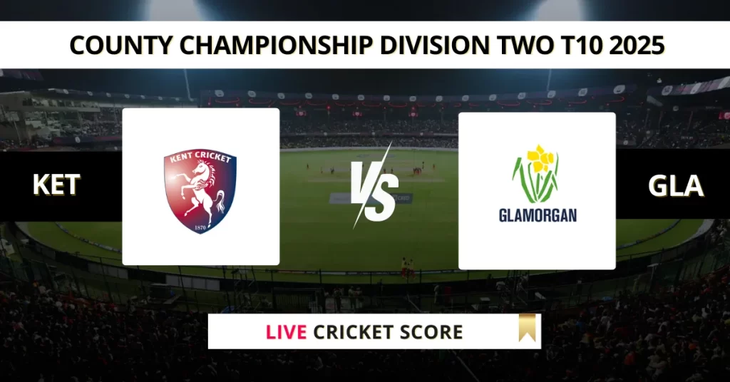 KET vs GLA Live Cricket Score — The Kent (KET) vs Glamorgan (GLA) 20th Match in the English County Championship 2025 is set for May 9, 2025, 3:30 PM IST, at St Lawrence Ground, Canterbury.