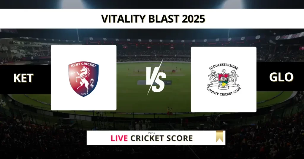 KET vs GLO Live Score: Follow the real-time updates and ball-by-ball coverage of The Match 60 in the Vitality Blast 2025. The match is being played at St Lawrence Ground on June 18, 2025, 11:00 PM IST.