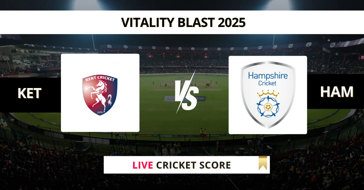 KET vs HAM Live Cricket Score — The Kent (KET) vs Hampshire (HAM) Match 34 in the English T20 Blast 2025 is set for June 8, 2025, 7:00 PM IST, at St Lawrence Ground.