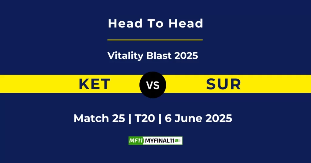 KET vs SUR Player Battle, Head-to-Head Team Stats & Records and more: Today in Vitality Blast (2025), Kent (KET) will take on Surrey (SUR) at St Lawrence Ground, Canterbury, on 6th June 2025 at 11:00 PM.