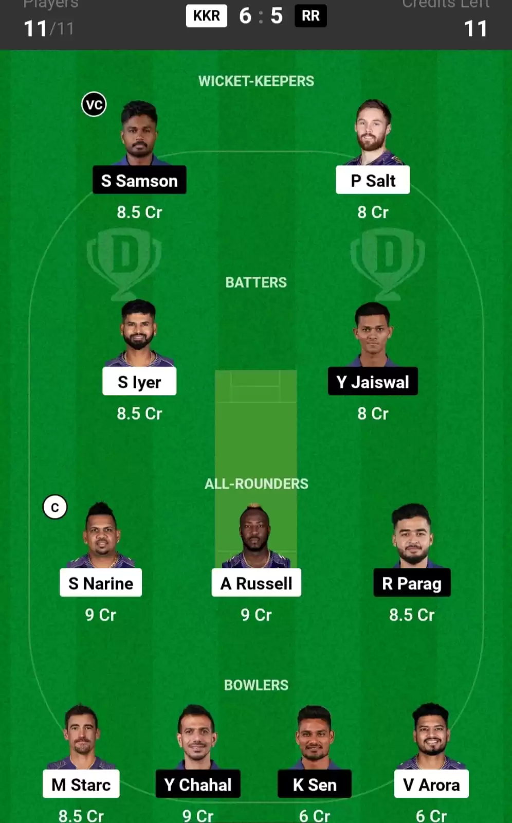 Sunil Narine and Sanju Samson will be the top picks for the Captain and Vice Captain selection for your dream11 fantasy team.