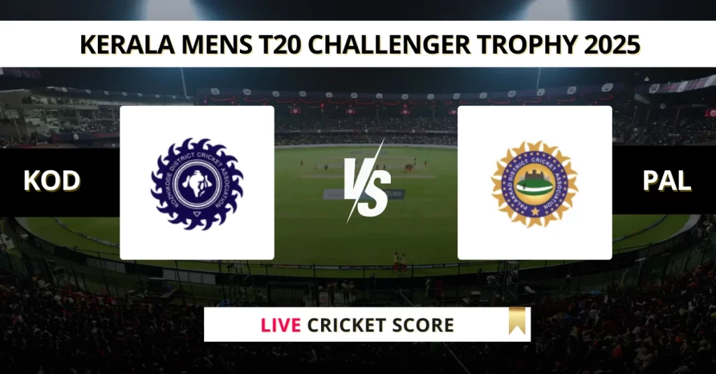 KOD vs PAL Live Cricket Score — The DCA Kozhikode (KOD) vs DCA Palakkad (PAL) Match 13 in the Kerala T20 Men’s Challenger Trophy 2025 is set for May 22, 2025 8:45 AM IST, at St Xavier’s College Ground, Thiruvananthapuram.