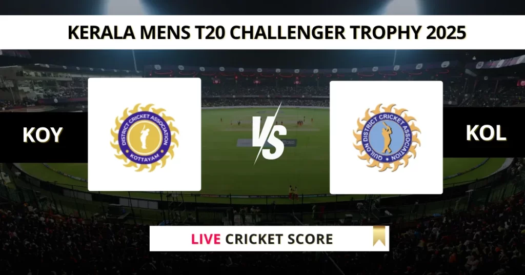 KOY vs KOL Live Cricket Score — The DCA Kottayam (KOY) vs DCA Kollam (KOL) Match 32 in the Kerala T20 Men’s Challenger Trophy 2025 is set for May 31, 2025, 1:00 PM IST, at St Xavier’s College Ground, Thiruvananthapuram.