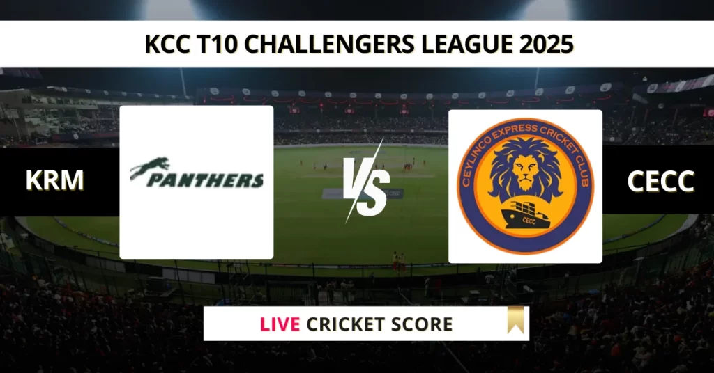 KRM vs CECC Live Cricket Score — The ACE KRM Panthers (KRM) vs Ceylinco Express CC (CECC) Final in the KCC T10 Challengers League 2025 is set for May 11, 2025 11:30 PM IST, at Sulaibiya Cricket Ground.