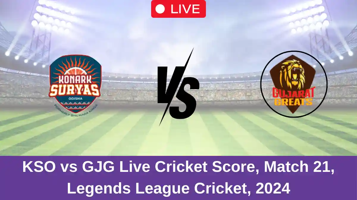 KSO vs GJG Live Cricket Score — The Konark Suryas Odisha (KSO) vs Gujarat Giants (GJG) Match 21 in the Legends League T20 is set for October 11, 2024 7:00 PM IST, at Bakshi Stadium.