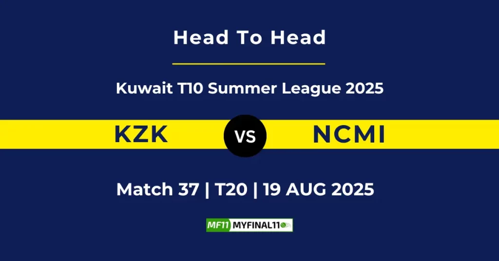KZK vs NCMI Player Battle, Head-to-Head Team Stats & Records and more: Today in Kuwait T10 Summer League (2025), Khan Zalmi Kings (KZK) will take on NCM Investments (NCMI) at Sulaibiya Cricket Ground, Kuwait City, on 19th August 2025 at 10:15 PM.