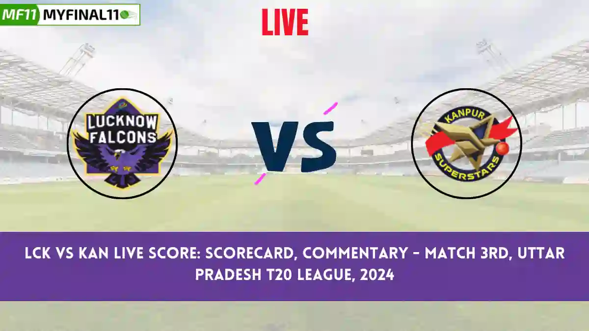 LCK vs KAN Live Cricket Score — The Lucknow (LCK) vs Kanpur (KAN) Match 3 in the Uttar Pradesh T20 League, 2024 is set for August 26, 2024 7:30 PM IST, at Bharat Ratna Shri Atal Bihari Vajpayee Ekana Cricket Stadium, Lucknow.