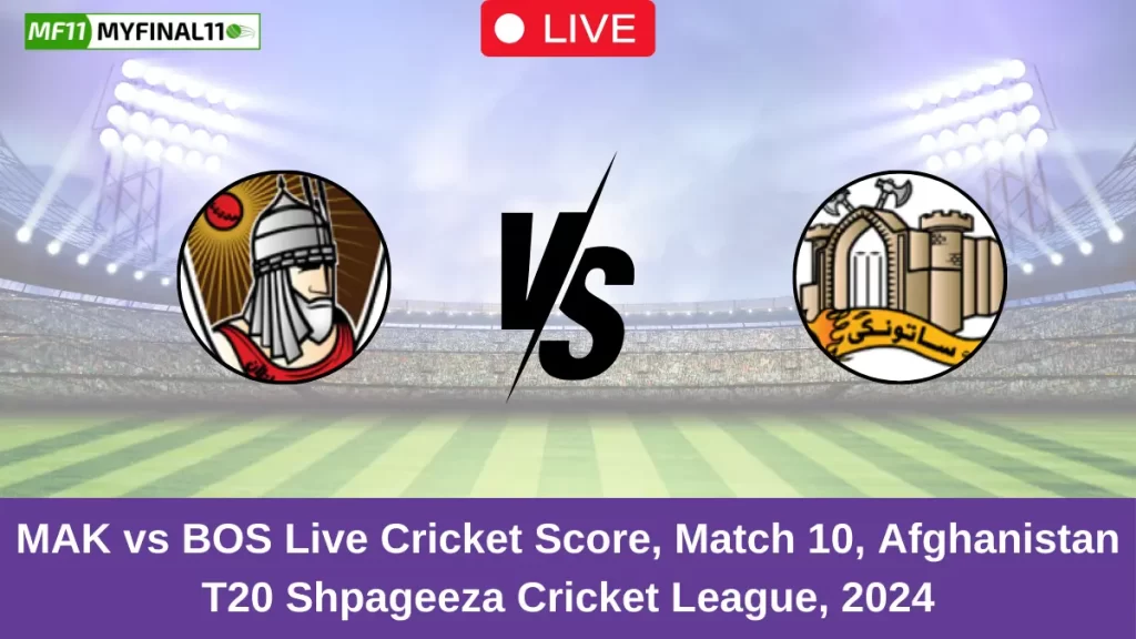 MAK vs BOS Live Cricket Score — The Mis Ainak Knights (MAK) vs Boost Defenders (BOS) Match 10 in the Shpageeza Cricket League is set for August 17, 2024 3:00 PM IST, at Kabul International Cricket Stadium.