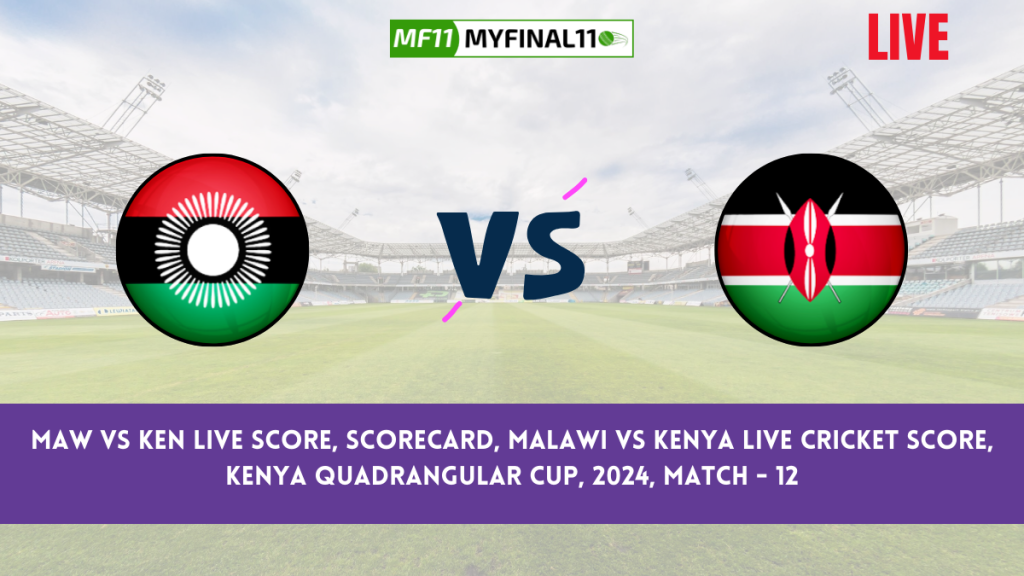 MAW vs KEN Live Score — Today’s 12th Kenya Quadrangular Cup T20 match between Malawi (MAW) and Kenya (KEN) will be held on July 4th, 2024, at Sikh Union Club Ground, Nairobi. It will start at 04:00 PM IST. Cricket fans can follow the live cricket score, scorecard, and ball-by-ball match commentary on myfinal11. Live streaming for this match is available on the Fancode app/website.