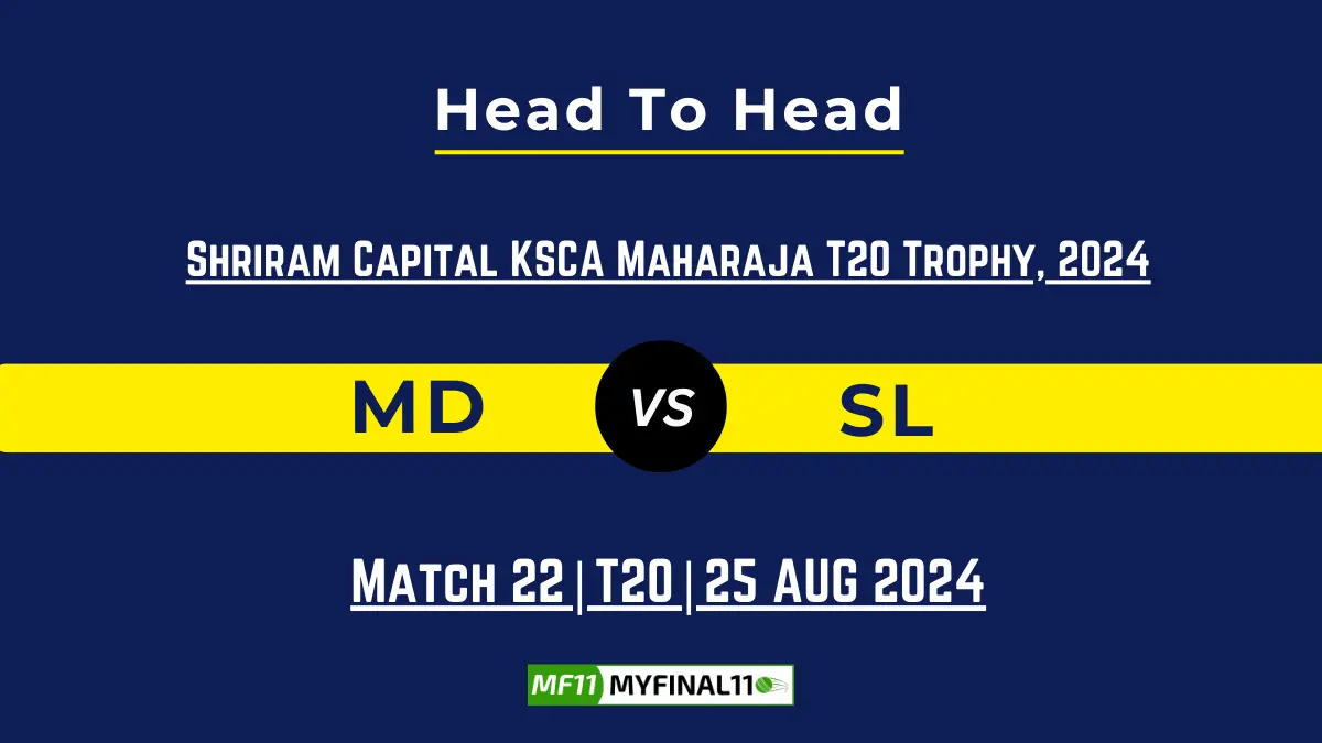 Get all the MD vs SL player battles, MD vs SL Stats, records, and head-to-head between Mangaluru Dragons and Shivamogga Strikers.