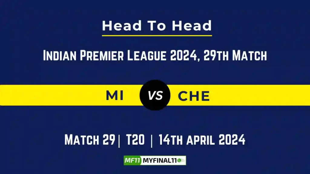 MI vs CHE Head to Head, MI vs CHE player records, MI vs CHE player Battle, and MI vs CHE Player Stats, MI vs CHE Top Batsmen & Top Bowlers records for the Upcoming Indian Premier League 2024, 29th T20 Match, which will see Mumbai Indians taking on Chennai Super Kings, in this article, we will check out the player statistics, Furthermore, Top Batsmen and top Bowlers, player records, and player records, including their head-to-head records.