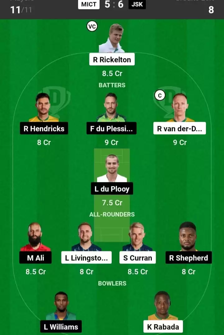 - Rassie van der Dussen and Ryan Rickelton is the top choice for captain or vice-captain in your fantasy team.