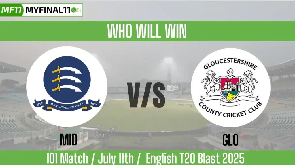 MID vs GLO Who will win today? Middlesex (MID) and Gloucestershire (GLO) will compete in the 101st match of the English T20 Blast 2025.