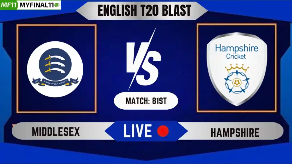 Get live score updates for the MID vs HAM match as Middlesex (MID ) takes on Hampshire (HAM) in the 81st English T20 Blast 2024 match. Follow the live score and ball-by-ball commentary here.